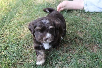 Havanese are good natured, fun loving, smart and can be easily trained. They do not bark incessantly like some other small breeds. The Havanese has a spirited personality and a curious disposition, and is notable for its springy gait, a characteristic that distinguishes the breed from all others. Unlike some toy breeds which do not do well around very young children, Havanese have a reputation for being a suitable playmate for children of all ages. This makes it a particularly good choice of pet for families who have children. The Havanese is considered an ideal family pet and a true companion dog.